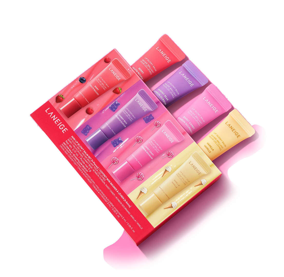 A limited edition set featuring 4 mini sizes of our fan-fave Lip Glowy Balms in Berry, Gummy Bear, Sweet Candy, and Vanilla.