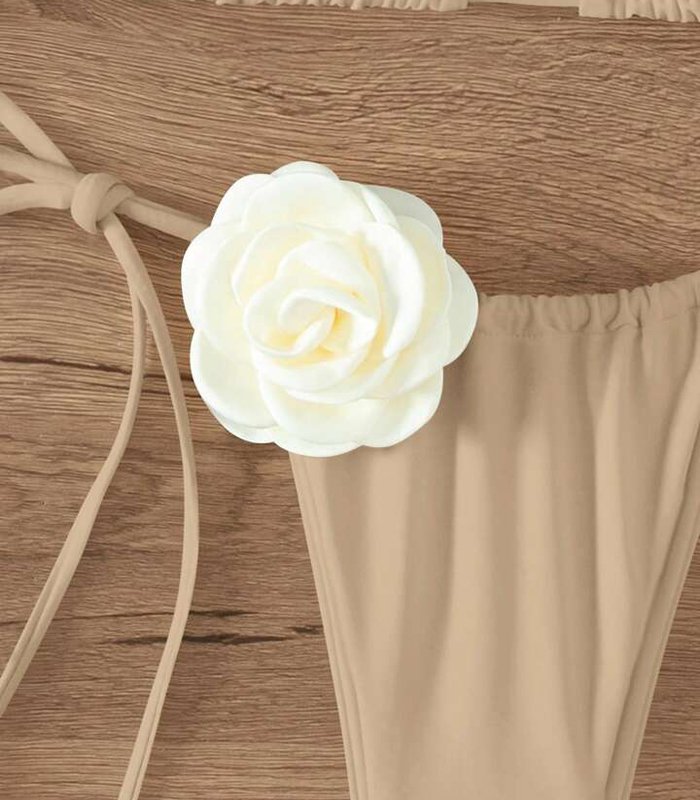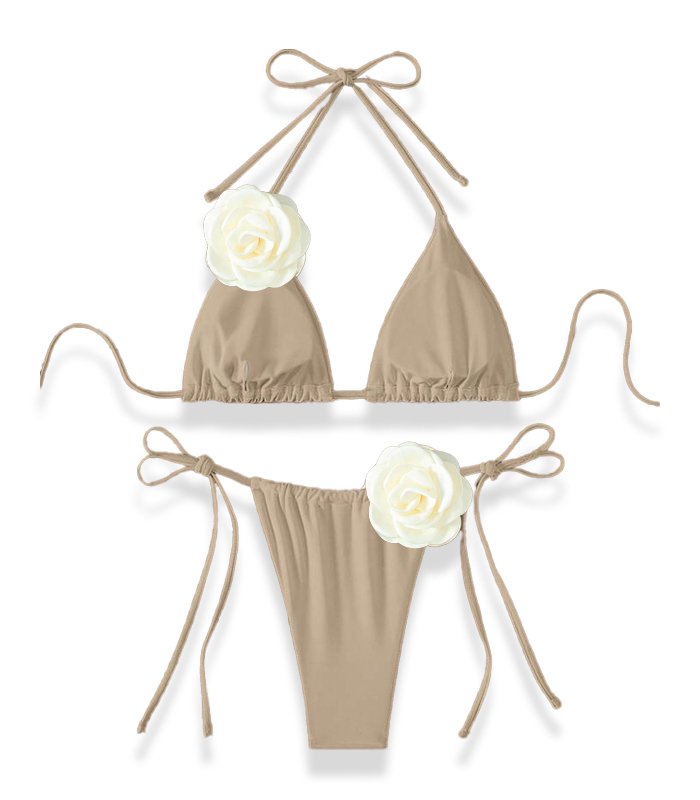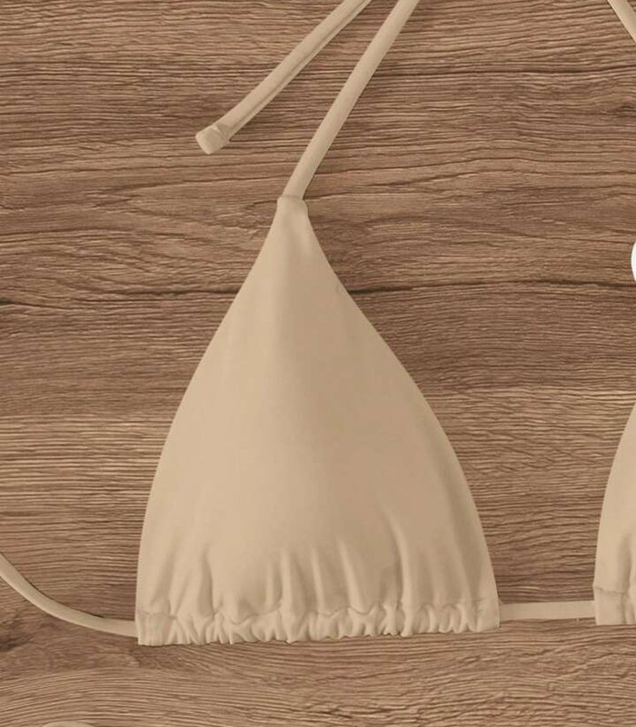 Details: Appliques, Tie Back. Color: Khaki. Style: Cute, Sexy. Pattern Type: Plain. Bottom Type: Tie Side. Neckline: Halter. Number of Pieces: 2 Piece Set. Fabric: High Stretch, Fabric. Care Instructions: Machine wash, do not dry clean. Chest Pad: Removable Padding. Bikini Tops & Bikini Bottoms. Composition: 20% Elastane, 80% Polyamide. Bikini Tops Body: Lined.